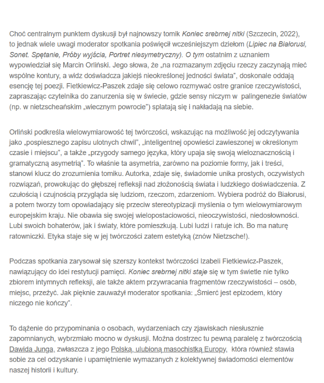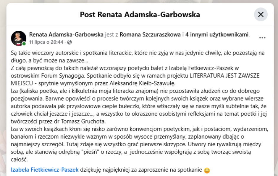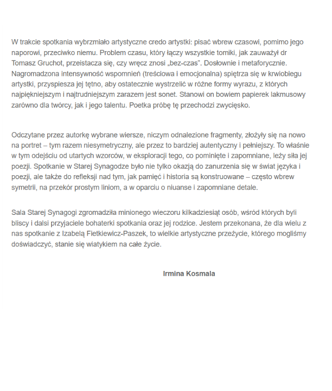 link do relacji Irminy Kosmali na stronie „Kuźnia Literacka”