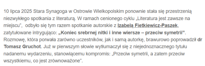 10.07.2025, spotkanie autorskie w Forum Synagoga