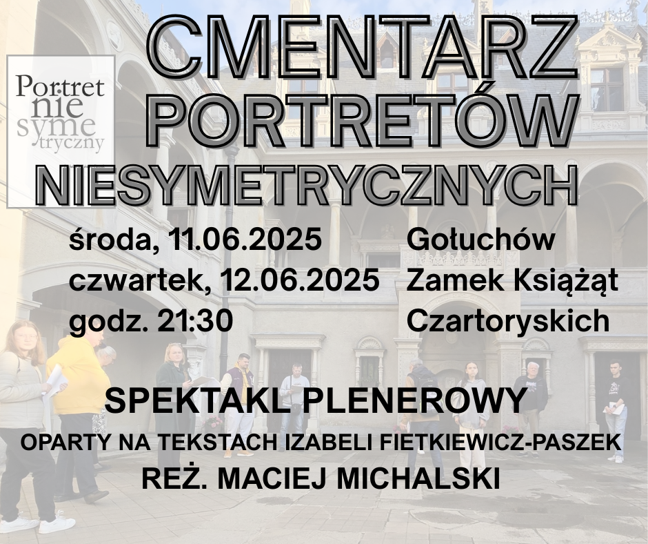 Cmentarz Portretów Niesymetrycznych, spektakl, 11.06. i 12.06.2025, Gołuchów 11 czerwca, 202518 grudnia, 2025 Izabela Fietkiewicz-Paszek Mateusz Halak na portalu Kultura u podstaw – relacja ze spektaklu w reż. Macieja Michalskiego na podstawie wierszy z „Portretu niesymetrycznego”