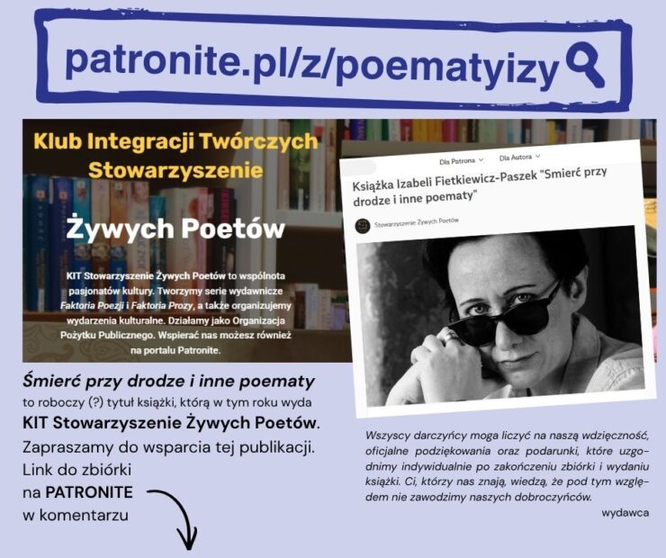 #IzabelaFietkiewiczPaszek#StowarzyszenieŻywychPoetów#KIT#poezja#polskapoezja#literatura#polskaliteratura#autor#kultura#wspieramkulturę#Patronite#crowdfunding#zbiórka#książka#poetrycommunity